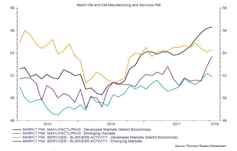 • The market expects 2017’s strong performance to continue in 2018 with full-year earnings expected to rise 24 per cent led by the recovering Energy sector, Technology, Consumer Discretionary and Financials. Furthermore, positive momentum remains intact as estimates for 2018 earnings are being revised up by 7 per cent in the last three months for US stocks.