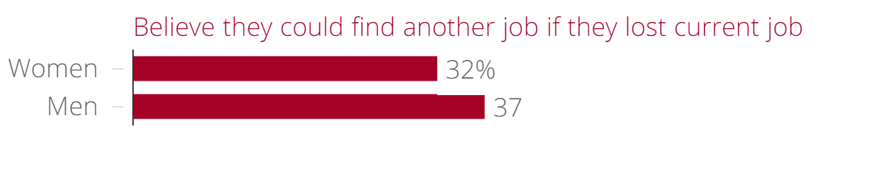 Women are concerned about more than just their pay, however, the survey shows. They are also more pessimistic than men about the future of their companies, and are less positive about the possibility of finding a new job should they lose their current one.