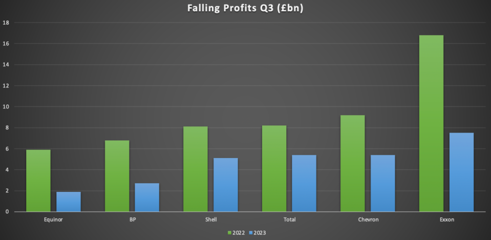 London-listed contenders BP and Shell were not immune to this slide in profits, posting year-on-year downturns of 60 per cent and 38 per cent respectively.