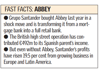 Abbey also said yesterday that more job cuts are on the way in addition to the 4,000 already announced. Trade unions fear 2,500 more jobs could go in a £300m cost-saving exercise currently being implemented by the Spanish owner. It is expecting to have made £200m of cost cuts by the end of the financial year, leaving it with another £100m to make by the end of 2007.