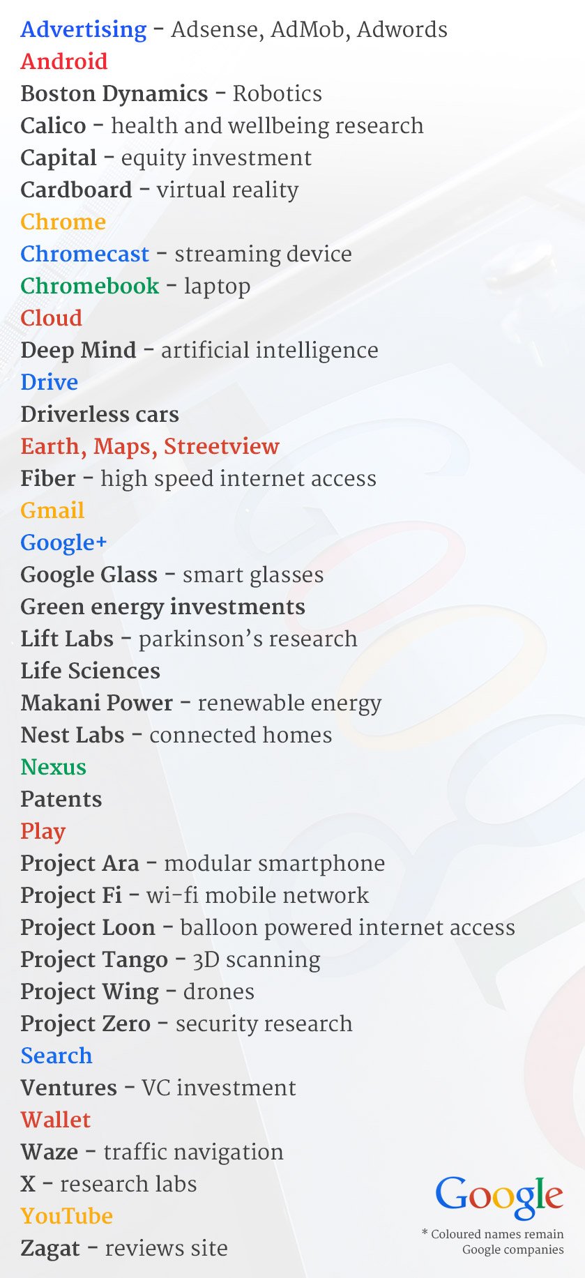 Here's our at-a-glance run down of the products and services which are likely to stay with Google or move under the Alphabet umbrella.