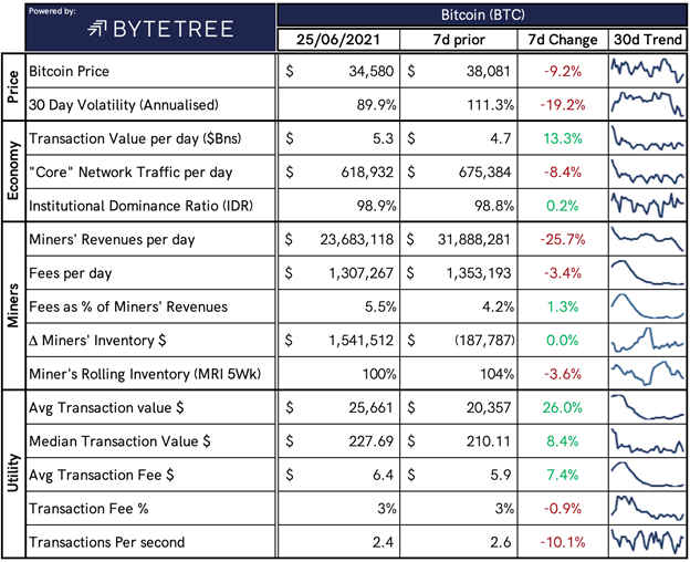 At the same time, the continued (and now confirmed) exodus of miners from China as a result of their latest clampdown has forced the current network hashrate down to levels not seen since this time last year. Of course, the network remains utterly secure and continues to run perfectly as designed, but many in the market still link hashrate to price – incorrectly in my view – which has undoubtedly been one of the factors in subdued price action over the last few days.