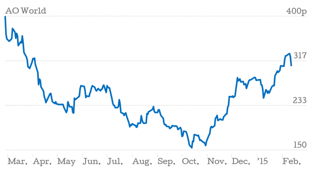 Today's fall, which followed a five per cent drop yesterday, means AO World shares are now well below their listing price of 285p – a price which the online retailer's bankers subsequently admitted was "punchy".
