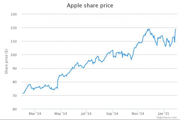 Apple’s share price just hit a record high of $120 following huge post-iPhone 6 quarterly earnings