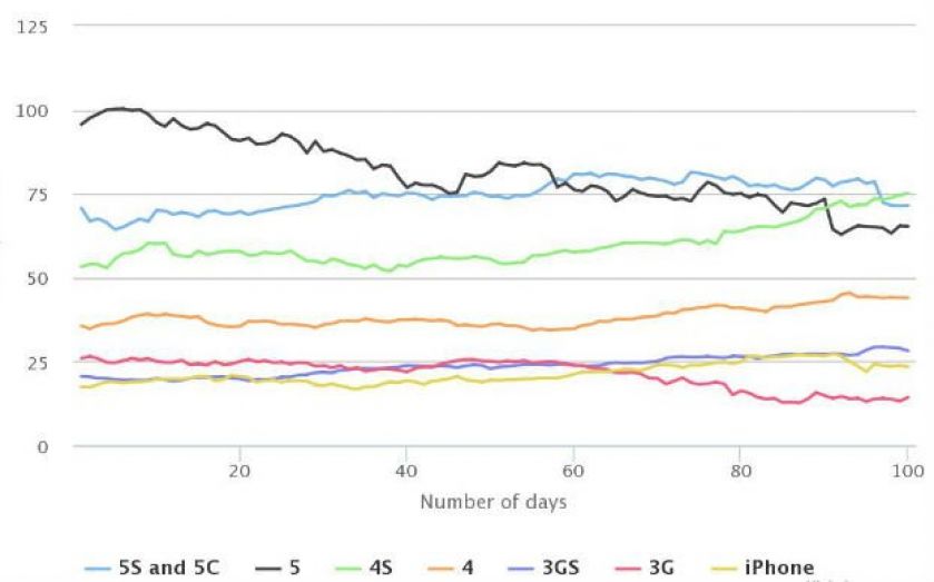 In the case of the iPhone 5 and the iPhone 3G, the share price didn’t rise above that open for at least the next 100 days.