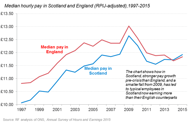 The analysis by the Resolution Foundation think tank found steady growth, high employment and improved productivity drove pay performance in pre-crisis Scotland, while after 2009 the squeeze on pay was shallower in Scotland than elsewhere.