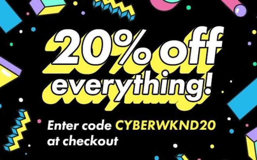 Fashion retailer is offering 20 per cent off all orders up to £500 that use the promo code CYBERWKND20.