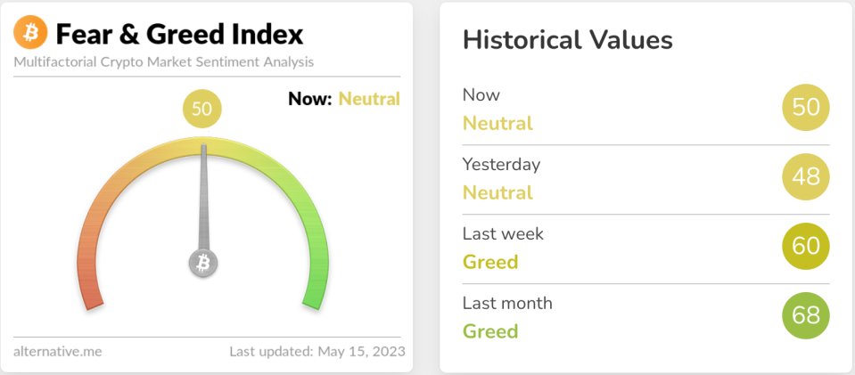 We closed yesterday, May 14, at a price of $26,930. The daily high yesterday was $27,150, and the daily low was $26,661.
