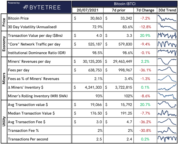 We closed yesterday, July 19 2021, at a price of $30,817.83, down from $31,796.81, the day before.