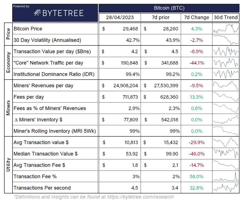 Bitcoin is trading a shade under $28k this morning, down 2% from yesterday as it continues to slowly drift from the key level of $30k, which failed to find support over the weekend after a push to $29,900 on Sunday.