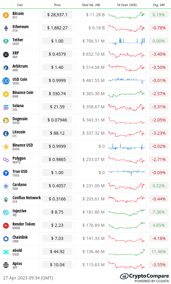 Yesterday saw something of a reversal in fortunes, with Bitcoin climbing back up above $29,000 for the first time in a week. The market leader came within a hamster sneeze of $30k, before dropping back to around the $29k mark where it languishes this morning. Can it continue to push back and establish itself past $30k again?