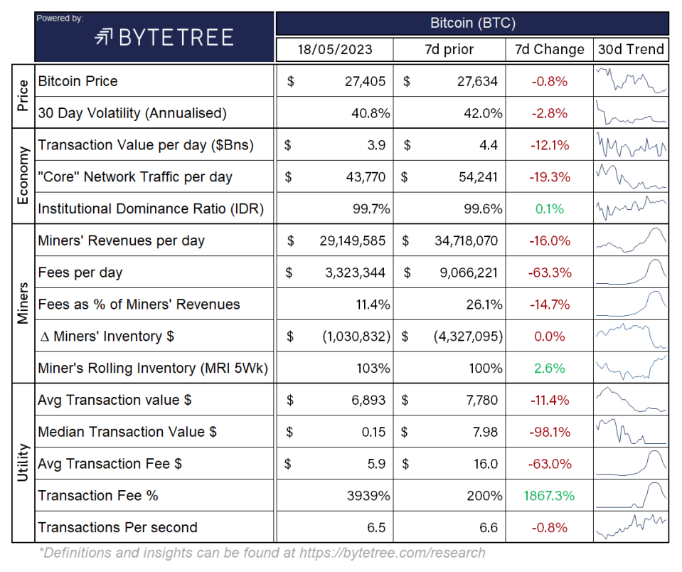 We closed yesterday, May 18, at a price of $26,832. The daily high yesterday was $27,466, and the daily low was $26,415.