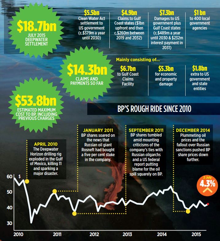Yesterday BP boss Bob Dudley said the settlement made planning the future of the company and its investments “much clearer,” adding: “We’ll be able to spend more time on what we do well, which is finding, producing, developing, selling products in oil and gas.”