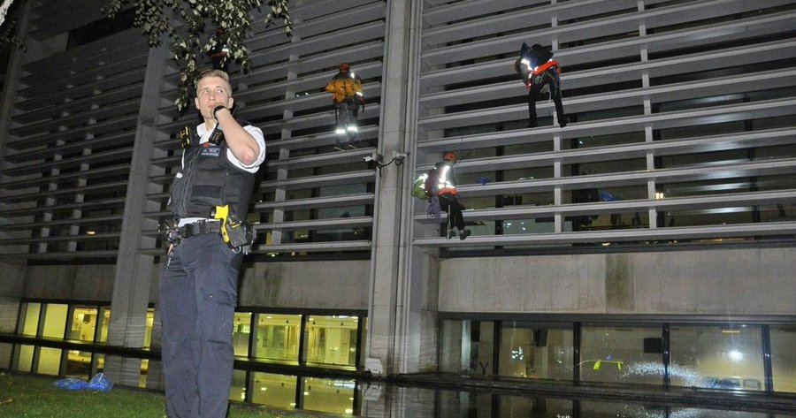 “Officers are on scene with the London Fire Brigade and are engaging with the protestors. As yet, there have been no arrests.”
