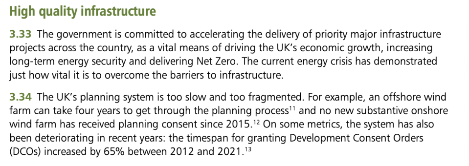 The Government has published its “Growth Plan” for 2022″, which includes easing rules around building onshore wind farms, in line with other infrastructure projects.
