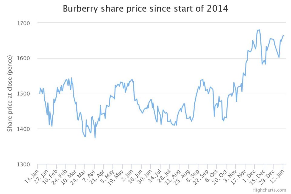 Despite the brand’s difficulties abroad, Burberry’s share price has been doing well over recent months. At the end of December, shares were valued at £16.45 – up from £14.83 six months earlier. However, after an initial spike its share price was down two per cent at pixel time this morning.
