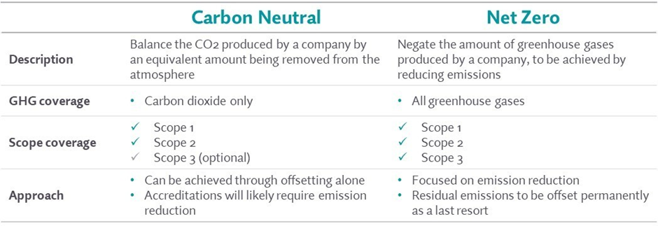 What does Carbon Neutral mean and how does it differ from Net Zero?