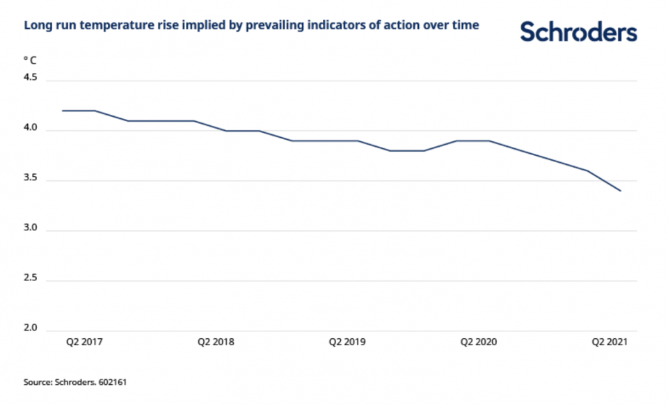 But it is also much better than the 4.2 degree rise the Schroders climate tracker indicated in Q1 2017 and indeed lower than the 3.9 degree increase implied by the Q2 2020 reading a year ago.