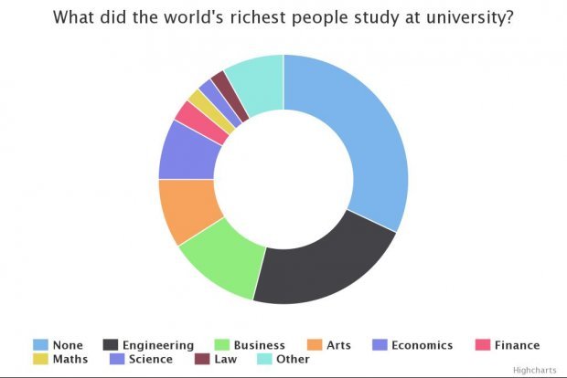 A business degree offers the next best chance of being a billionaire, with 12 per cent of the list's members having studied this money-focused subject. All combined, arts graduates comprise just nine per cent of the world's wealthiest billionaires.