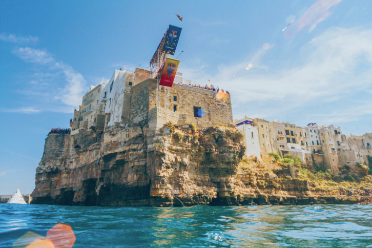 A five minute walk through the narrow streets of the old town leads to a busy pebble beach surrounded by high cliffs and a hotchpotch of whitewashed buildings, comprising Baroque, Byzantine, Roman, Venetian and Greek architecture. Devouring the most vivid plate of sea urchin troccoli, tasting like filtered ocean spray, we watch a rather nervous gentleman 30 metres up on a rock ledge take the plunge into the pool below. This place is a mecca for cliff diving. Red Bull hosts a world championship event every June. I shan’t be trying it.