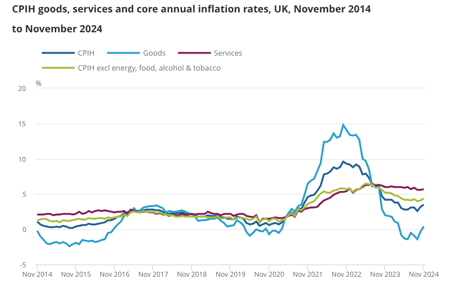 Services inflation, which is the most important gauge of homegrown inflation, remained at five per cent in November, which was actually slightly below expectations.