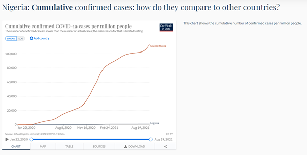 The USA is 61% larger than Nigeria by population. If the USA had the same deaths per capita as Nigeria, it would have had only 3,575 COVID deaths. If you do the math, the USA had 179 times the deaths per capita of Nigeria.