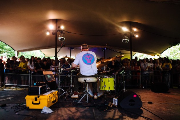 Another standout was COLOSSAL SQUID, a project by Adam Betts who has drummed for the likes of Squarepusher and Jarvis Cocker. His is a mesmerising fusion of jungle, Indonesian gabba and glitches. Punters packed out The Boat stage for his set – despite his similarly small online presence – and it was one of the best of the entire weekend. With just a drum kit on stage, he whipped up huge beats gaining a reception more appropriate for 4am at a rave than 5pm on a Friday afternoon.