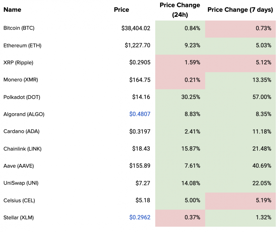Bitcoin came back within striking distance of $40,000 again yesterday and has now recouped most of its losses from the dip earlier this week. There have been a number of reasons posited for the retrace and subsequent recovery, and it’s likely that a large part of it was simply the natural ebbs of flows of the bull market. The rebound does, however, also correspond with Grayscale reopening its services to new investors on 13 January, Joe Biden announcing his stimulus plans, and Lindsay Lohan giving her punchy $100,000 prediction on Cameo. What do you reckon – part of the cycle or another factor from this snowstorm of bullishness? It was probably Lohan, right? Like a sheep with alopecia, there’s no wool over our eyes.