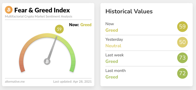 Market sentiment is up to 59.