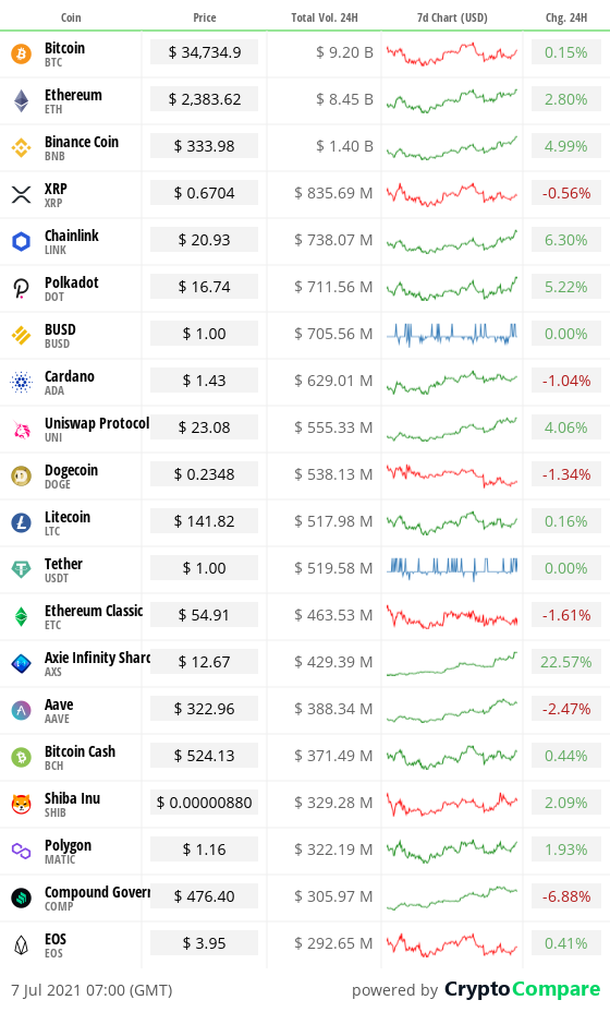 It’s a similar pattern everywhere this morning, with swings of just one or two per cent in either direction for the likes of Ethereum and Cardano too. The big news yesterday was that Ethereum’s long-awaited London hard fork is likely to launch on August 4.