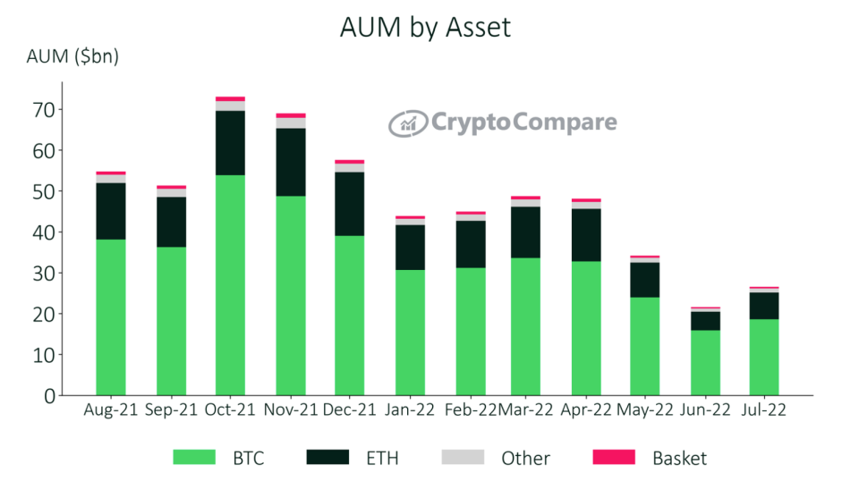 Ethereum’s performance last month has seen Ethereum-based cryptocurrency investment products lead a bounce-back in the assets under management of digital asset investment products, with Ethereum-based products seeing their AUM rise 44.6% to $6.57 billion, according to CryptoCompare’s Digital Asset Management Review.