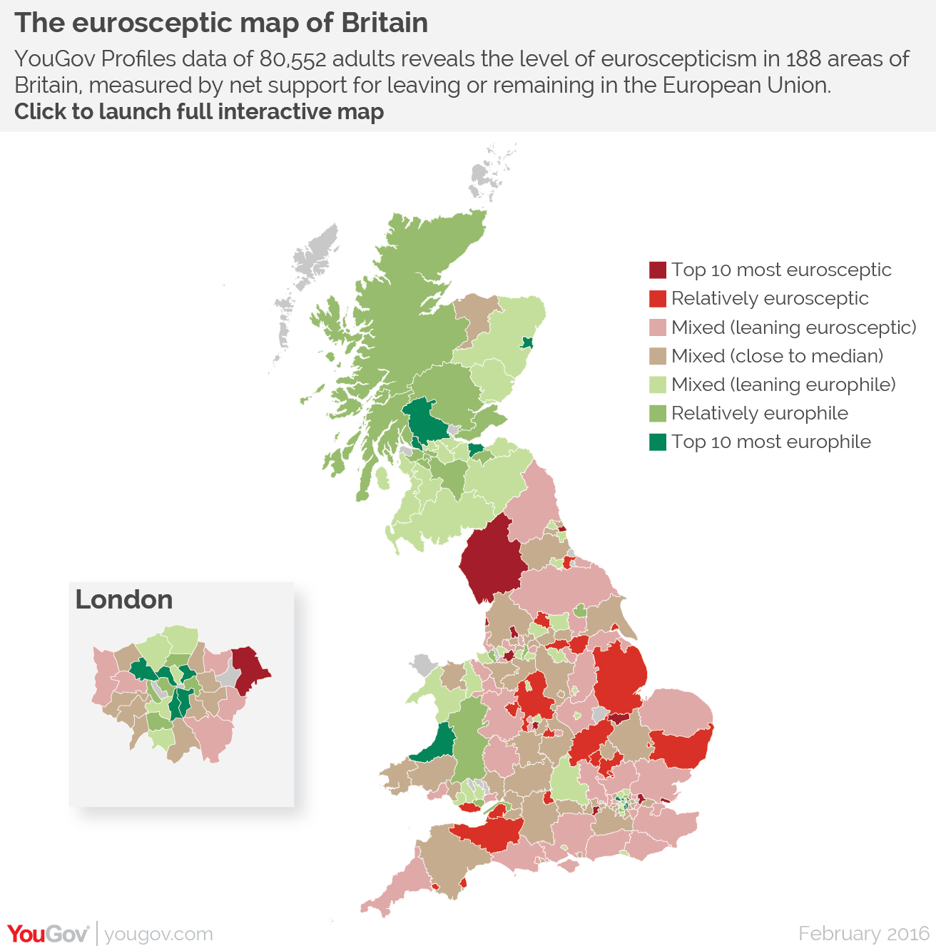 But just where should these campaigns focus their resources? New YouGov research may have given them a hint, finding both the most eurosceptic and europhile areas of the UK.