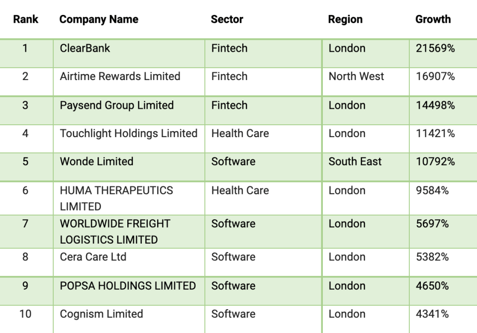 The final score sheet revealed that 78 per cent of top tech companies are based in the Capital with Clearbank, a payment and banking services provider, crowned as the overall winner, having achieved an average three-year growth rate of 21,569 per cent.