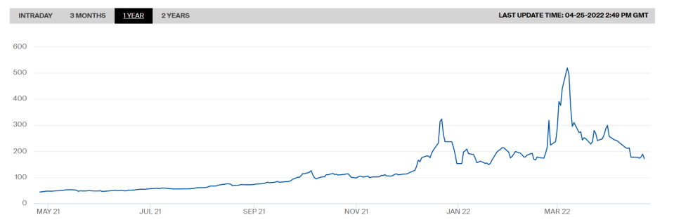 Natural gas prices have since peaked at record levels of over £8 per therm last month, following the targeting of Russian energy supplies from the UK and US last month.
