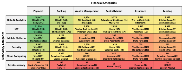 At the other end of the scale, cryptocurrency technology is far more niche, powering less than 1,000 fintech patents across all categories.