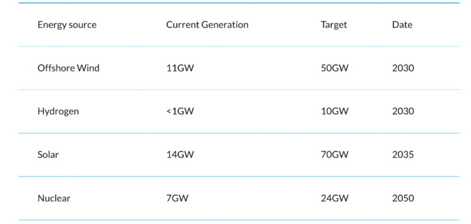 Its ambitious targets include ramping up solar power from 14GW to 70GW by 2035 and boosting offshore wind from 11GW of assets to 50GW by the end of the decade – alongside an ambition to reach 10GW of hydrogen over the same time period.