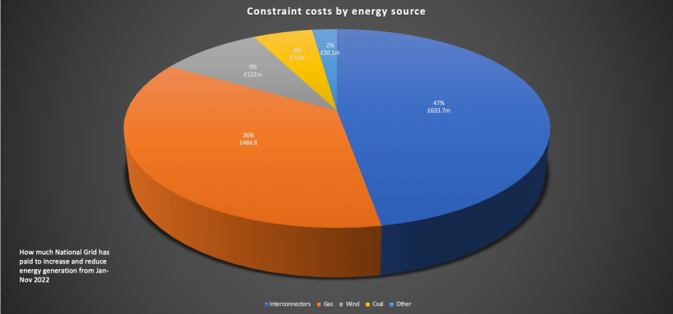 For the first 11 months of 2022, National Grid forked out £1.34bn constraining energy supplies – including £122m on wind power – to prevent the grid being overwhelmed.