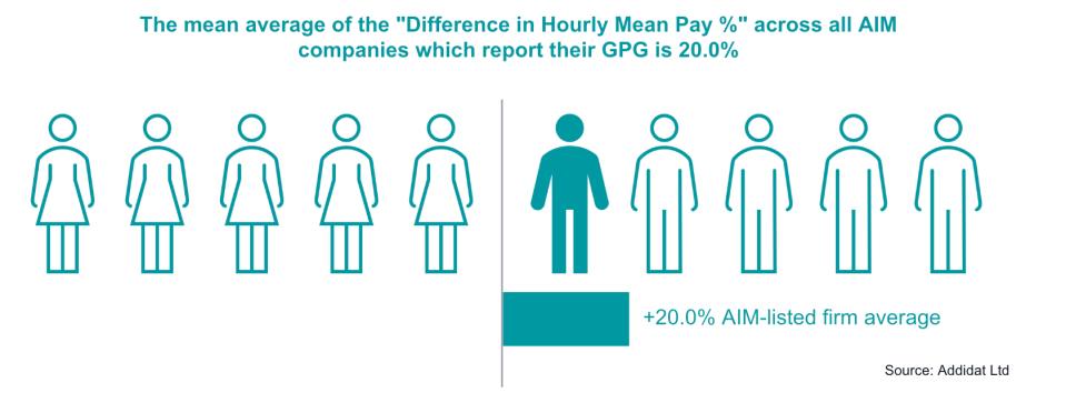 Whilst the mix of company sizes within the AIM market means data is not available across the whole cohort, the information shows that the mean average of the “Difference in Hourly Mean Pay %” across all AIM companies who report their GPG is 20.0%.