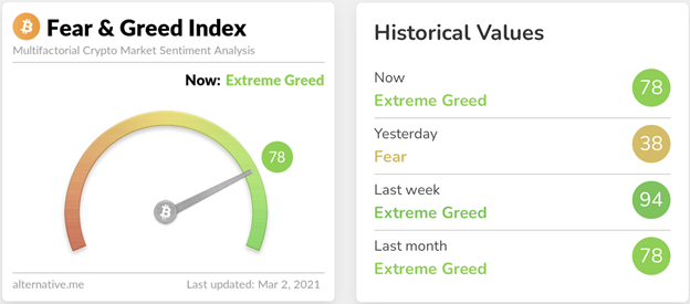 Market sentiment is right back up to 78 again today, after dipping into fear yesterday temporarily.