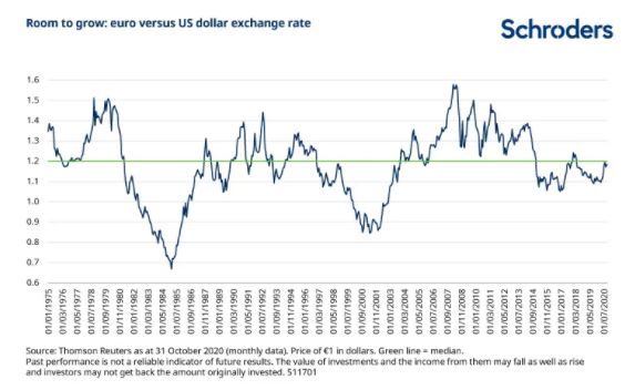 When non-US investors turn to the safe haven of US government bonds or, as many have done in recent years, pour money into US tech stocks like Amazon, they need to obtain US dollars to do so. This boosts the currency. Higher growth in Europe, coupled with a more stable political situation, ought to have similarly positive effects for the euro over time.