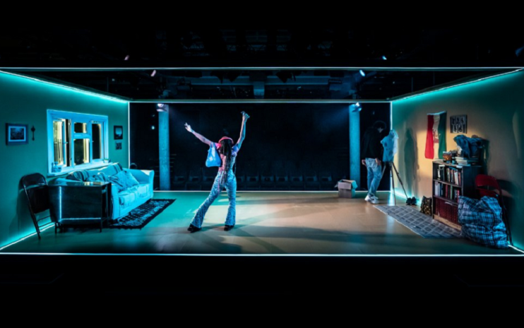 We’re in-the-round in the Bush Theatre’s main Holloway Theatre space with Frankie Bradshaw’s set sitting like a TV studio in the middle. The exposed set highlights how claustrophobic this small London flat feels. With bright lights, unexpected summer heat and windows that will barely open, it’s a hellscape even for the tightest, most functioning of families.