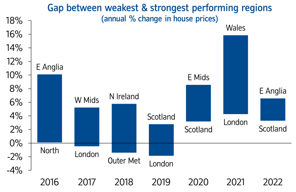 “As shown on the chart below, last year the gap between the best performing region (Wales) and worst performing region (London) was 11.6pp, whilst this year it was just 3.3pp (between East Anglia and Scotland).