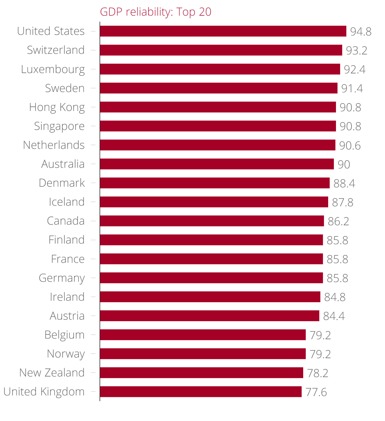 Fastidious Switzerland and Luxembourg have the highest quality GDP data, alongside the US according to World Economics.