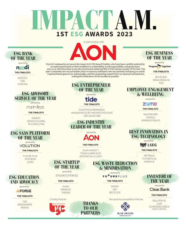 The inaugural Impact AM ESG Awards, a celebration of the remarkable strides in the environmental, social, and governance (ESG) landscape, are coming next week on Tuesday 12 December.