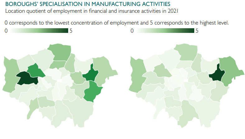 Boroughs in central and south London have the lowest concentration of manufacturing employment.