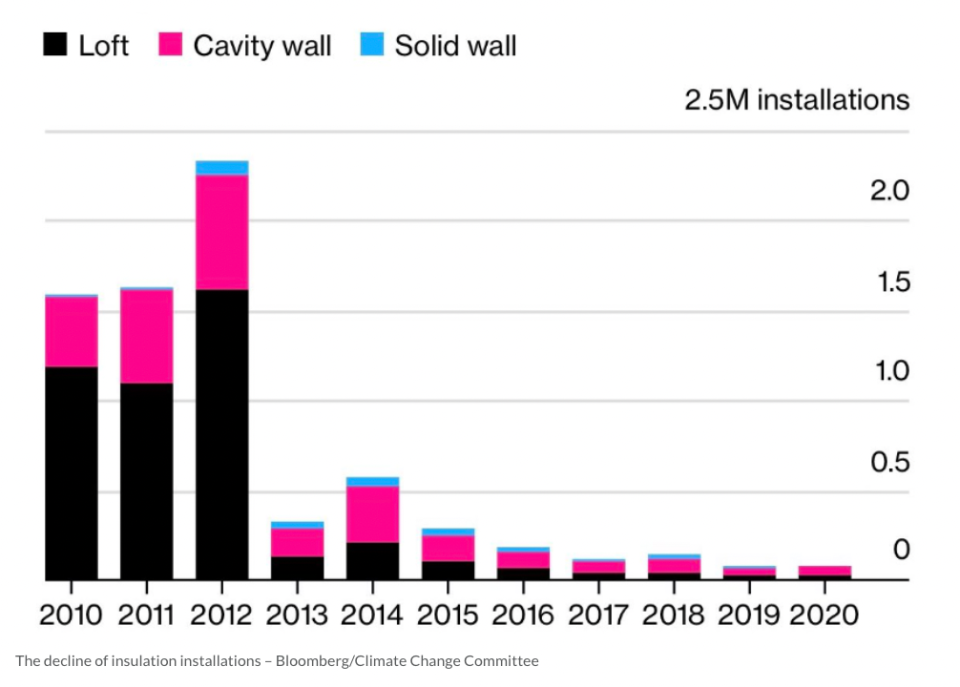 At that rate, just 1.2m homes in the UK will have had insulation installed by the end of 2030, far below what is needed.