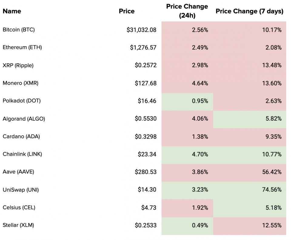 It seems that all the excitement has distracted everyone from the crypto markets somewhat, which has been plodding along pretty serenely by all accounts. Bitcoin continues to trade in that valley between $30k-$35k, while Ethereum is still hovering just below that $1300 mark. In the spirit of the week, only Doge is making a real impact and is up over 40% in the last 24 hours. With everyone busy trading nostalgia stocks, how will we end the week?