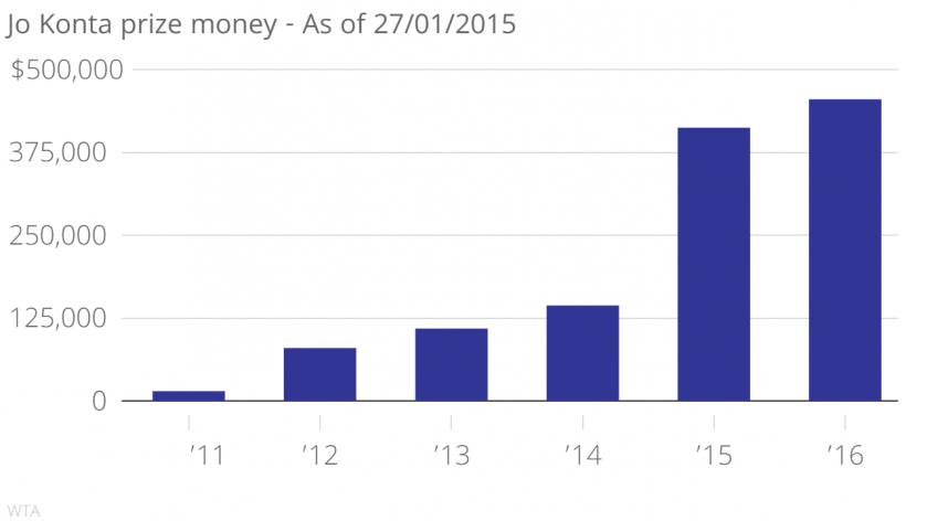 January's not yet over, but already Konta has pocketed more in prize money than she made in the entirety of last year alone when she earned $412,141.