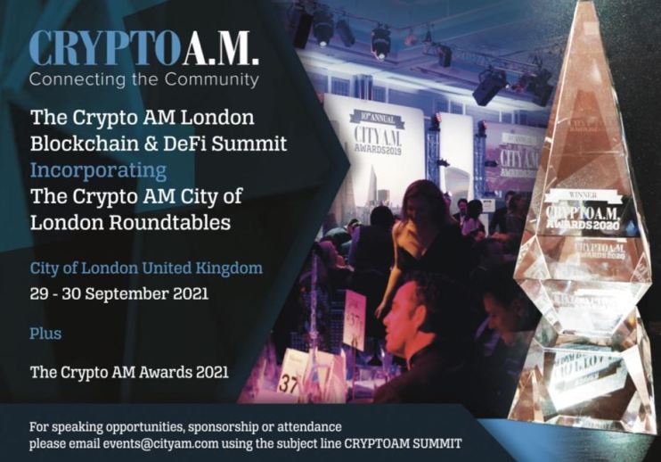 For speaking opportunities, partnership packages or attendance (tickets will be strictly limited and by application) please email: events@cityam.com using the subject line ‘CRYPTOAM SUMMIT‘.