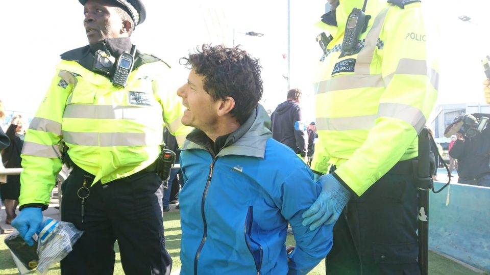 Extinction Rebellion founder Stu Basden is believed to be among those to have been arrested at the airport.